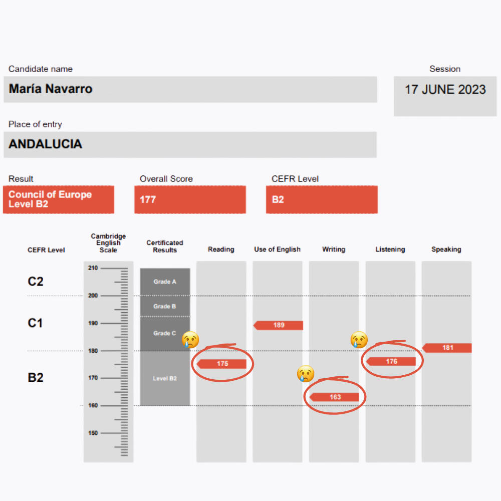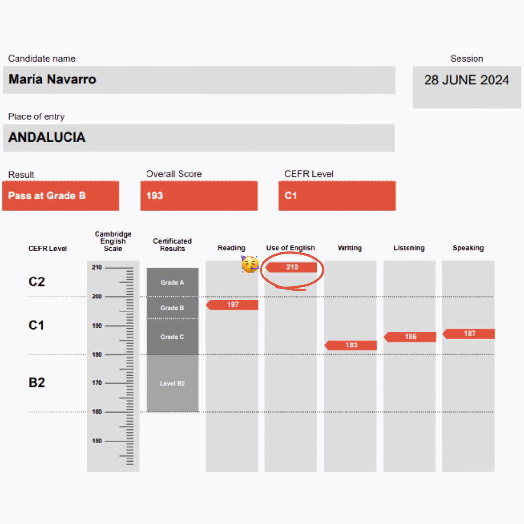 - Todas las skills aprobadas (210 en Use of English)